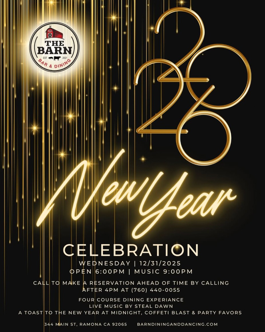 Ring in 2026 with style at The Barn! Enjoy an elegant four-course dining experience, live music by Steal Dawn, and a sparkling midnight toast, party favors and a confetti blast to welcome the new year in pure gold. Celebrate, indulge, and make New Year’s Eve unforgettable with us.